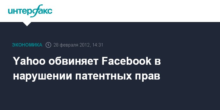 Нью-Йорк. 28 февраля. INTERFAX.RU - Американская корпорация Yahoo! предъявила претензии к социальной сети Facebook, обвинив ее в нарушении патентных прав, пишет Financial Times.