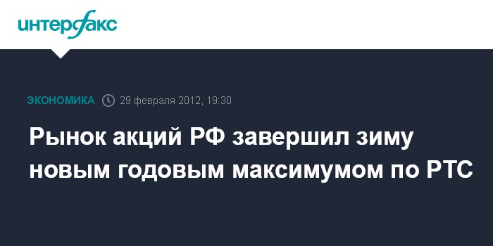 Рынок акций РФ завершил зиму новым годовым максимумом по РТС