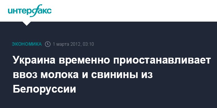 Украина временно приостанавливает ввоз молока и свинины из Белоруссии