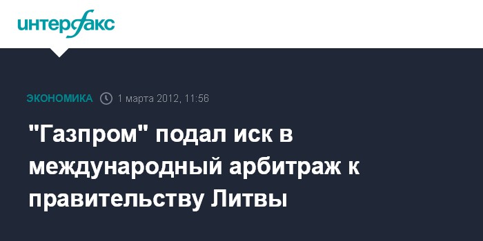 Москва. 1 марта. INTERFAX.RU - "Газпром" в четверг обратился в международный арбитраж с иском к правительству Литвы с целью защиты своих инвестиций в Литовской Республике, сообщила компания.