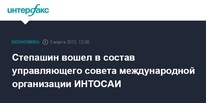 Дели. 3 марта. INTERFAX.RU - Глава Счетной палаты РФ Сергей Степашин вошел в состав управляющего совета Международной организации высших контрольных органов ИНТОСАИ. За его избрание проголосовали участники Конгресса ИНТОСАИ, проходящего в Дели.