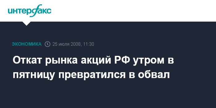 Москва. 25 июля. INTERFAX.RU - Откат российского рынка акций, преобладавший в последние дни, утром в пятницу превратился в форменный обвал на фоне ухудшения конъюнктуры мировых фондовых площадок, индексы обновили многомесячные минимумы.