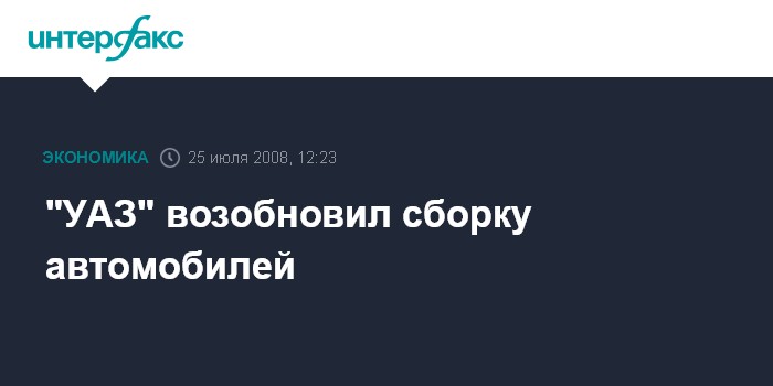 Москва. 25 июля. INTERFAX.RU - ОАО "Ульяновский автомобильный завод (УАЗ) в пятницу возобновило производство автомобилей после корпоративного отпуска, начавшегося 7 июля.