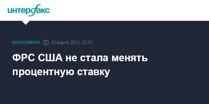 Вашингтон. 13 марта. INTERFAX.RU - Федеральная резервная система (ФРС) США по итогам однодневного заседания во вторник приняла решение о сохранении целевого диапазона базовой процентной ставки от нуля до 0,25% годовых, говорится в документе по результатам февральского заседания Федерального комитета по открытым рынкам (FOMC). Аналитики также не ожидали изменения ставки.