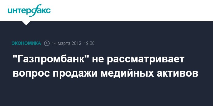 "Газпромбанк" не рассматривает вопрос продажи медийных активов