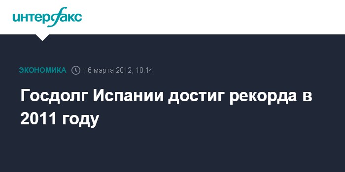 Мадрид. 16 марта. INTERFAX.RU - Госдолг Испании на конец 2011 года составил 68,5% ВВП, что является максимальным уровнем, по крайней мере, за два десятилетия, в течение которых отслеживаются эти данные, сообщило агентство Bloomberg со ссылкой на информацию Банка Испании.