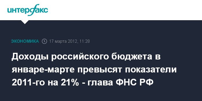 Доходы российского бюджета в январе-марте превысят показатели 2011-го на 21% - глава ФНС РФ