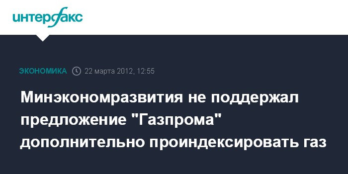 Минэкономразвития не поддержал предложение "Газпрома" дополнительно проиндексировать газ
