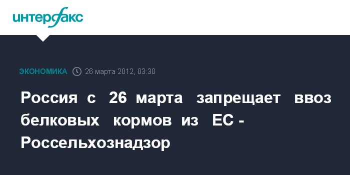 отменяются. Корма, отгруженные до 26 марта 2012 года, будут поступать в