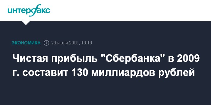 Чистая прибыль "Сбербанка" в 2009 г. составит 130 миллиардов рублей
