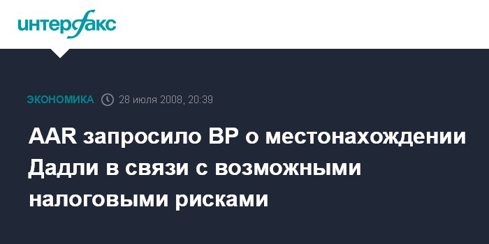 AAR запросило ВР о местонахождении Дадли в связи с возможными налоговыми рисками