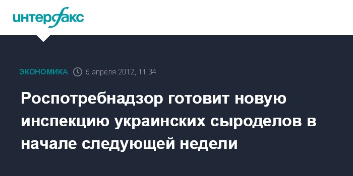 5 апреля. INTERFAX.RU - В начале следующей недели эксперты Роспотребнадзора готовятся вылететь в Киев для проведения новой инспекции украинских предприятий, собирающихся поставлять сыр в Россию, заявил "Интерфаксу" глава ведомства, главный государственный санитарный врач РФ Геннадий Онищенко.