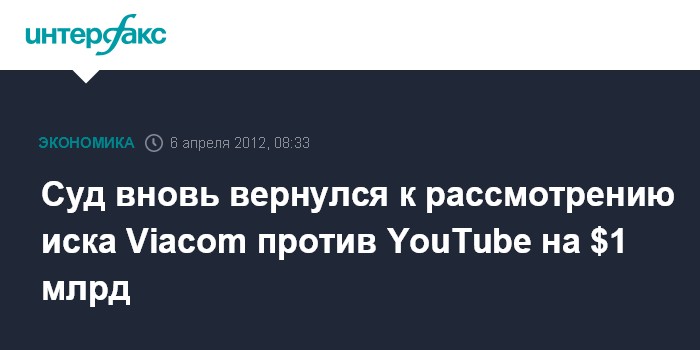 Нью-Йорк. 6 апреля. INTERFAX.RU - Федеральный апелляционный суд вернулся к рассмотрению дела по обвинению компанией Viacom Inc. YouTube, принадлежащий Google, в сознательном нарушении авторских прав через размещение в период с 2005 по 2008 гг. на интернет-сервисе продуктов, созданных структурами Viacom.