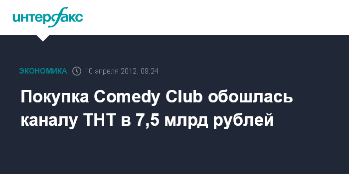 Покупка Comedy Club обошлась каналу ТНТ в 7,5 млрд рублей