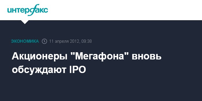 Москва. 11 апреля. INTERFAX.RU - Акционеры ОАО "Мегафон" обсуждают возможность проведения IPO, сообщила газета "Коммерсант" со ссылкой на неназванные источники. Этот вопрос поднимался на последнем заседании совета директоров оператора, правда, никаких решений принято не было, пишет газета.