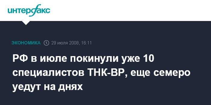 РФ в июле покинули уже 10 специалистов ТНК-ВР, еще семеро уедут на днях
