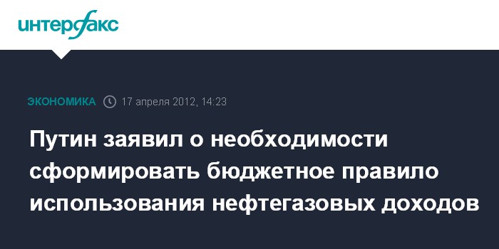 Москва. 17 апреля. INTERFAX.RU - Премьер-министр РФ Владимир Путин считает необходимым сформулировать новое бюджетное правило использования нефтегазовых сверхдоходов, которое бы ограничивало размер ненефтегазового дефицита бюджета.