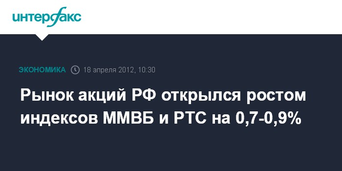 Рынок акций РФ открылся ростом индексов ММВБ и РТС на 0,7-0,9%