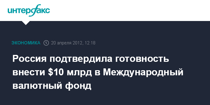 Россия подтвердила готовность внести $10 млрд в Международный валютный фонд