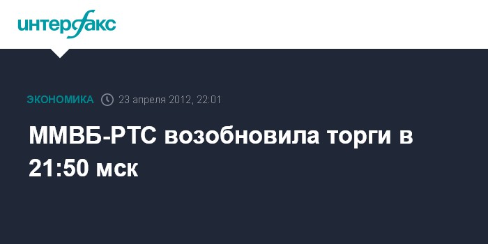 Москва. 23 апреля. INTERFAX.RU - Объединенная биржа "ММВБ-РТС" в 21:50 мск возобновила торги в основном секторе фондового рынка.