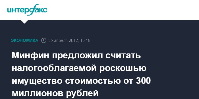 Минфин предложил считать налогооблагаемой роскошью имущество стоимостью от 300 миллионов рублей