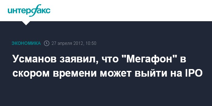 Москва. 27 апреля. INTERFAX.RU - Выход ОАО "Мегафон" на IPO согласован акционерами и может последовать в ближайшее время, следует из слов контролирующего акционера оператора Алишера Усманова.