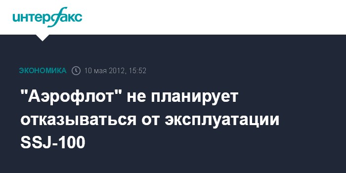 Москва. 10 мая. INTERFAX.RU - ОАО "Аэрофлот - российские авиалинии" (РТС: AFLT) не планирует отказываться от эксплуатации воздушных судов Sukhoi SuperJet-100 (SSJ-100), говорится в Twitter авиаперевозчика.