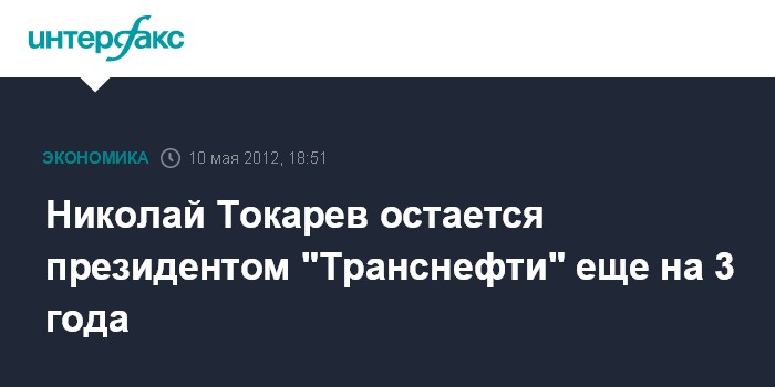 Москва. 10 мая. INTERFAX.RU - Трудовой договор с действующим президентом государственной нефтепроводной компании "Транснефть" Николаем Токаревым продлен на три года, говорится в сообщении компании.