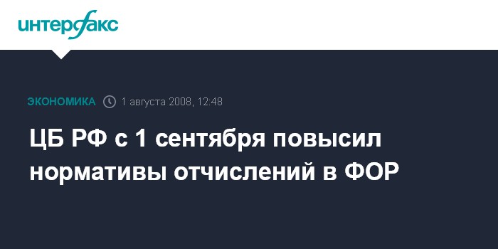 ЦБ РФ с 1 сентября повысил нормативы отчислений в ФОР