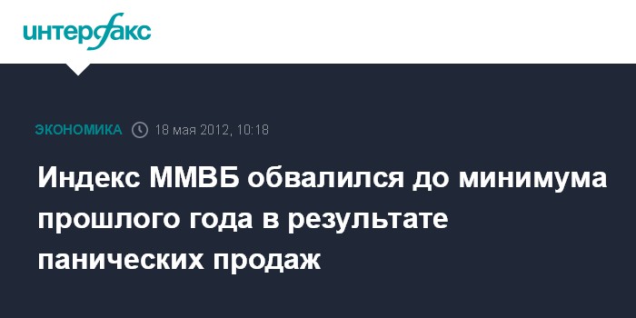 Москва. 18 мая. INTERFAX.RU - Индекс ММВБ, один из основных российских фондовых индикаторов, утром в пятницу обвалился до минимума прошлого года - в район 1250 пунктов - на панических продажах на всех мировых площадках после снижения рейтинга Греции и ряда испанских банков.