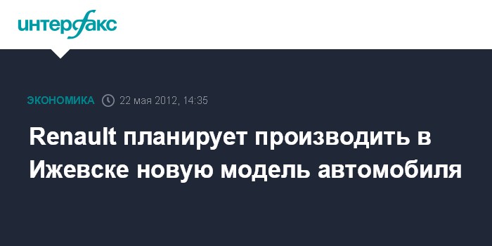 Ижевск. 22 мая. INTERFAX.RU - Renault планирует производить на площадке ОАО "АвтоВАЗ" в Ижевске новую модель автомобиля, сообщил генеральный директор Renault в России Бруно Анселен журналистам в Ижевске во вторник.