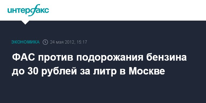ФАС против подорожания бензина до 30 рублей за литр в Москве