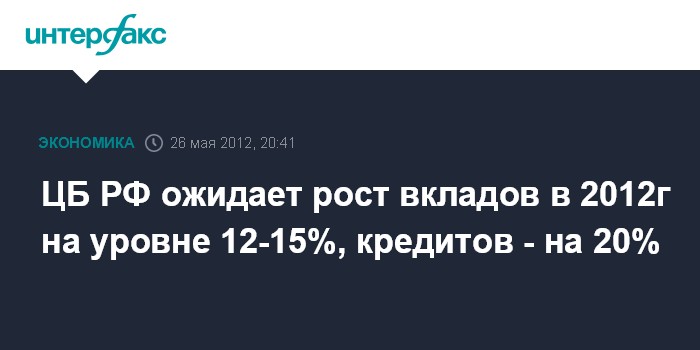 ЦБ РФ ожидает рост вкладов в 2012г на уровне 12-15%, кредитов - на 20%