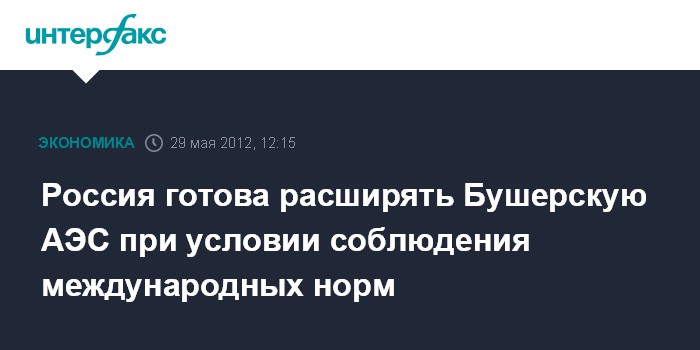 Астана. 29 мая. INTERFAX.RU - Росатом готов принять участие в создании следующего энергоблока на АЭС в Бушере (Иран), "если это будет не запрещено, выгодно и если мы получим просчитанный проект", заявил заместитель главы госкорпорации "Росатом" Николай Спасский.