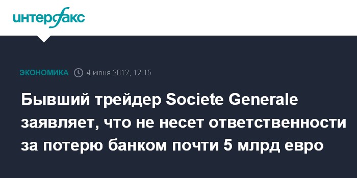 Бывший трейдер Societe Generale заявляет, что не несет ответственности за потерю банком почти 5 млрд евро