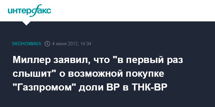 Куала-Лумпур. 4 июня. INTERFAX.RU - Глава "Газпрома" Алексей Миллер "в первый раз слышит" о возможной покупке "Газпромом" доли BP в ТНК-BP.