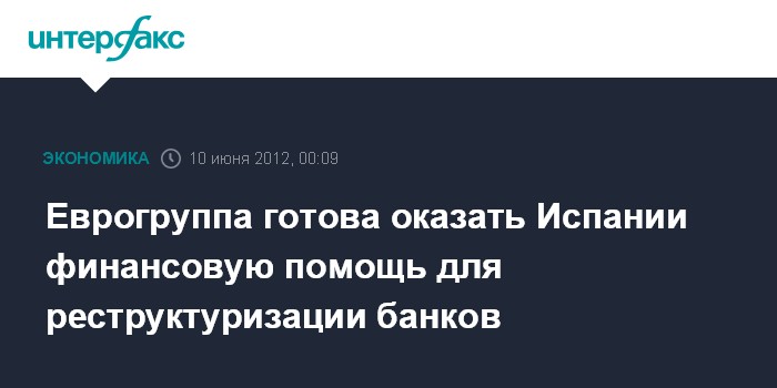 "Еврогруппа поддерживает усилия испанских властей по решительной реструктуризации финансового сектора и приветствует их намерение обратиться за финансовой помощью в этих целях к государствам еврозоны", - говорится в заявлении Еврогруппы, распространенном в субботу.
