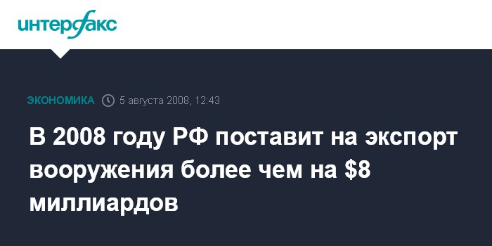 В 2008 году РФ поставит на экспорт вооружения более чем на $8 миллиардов