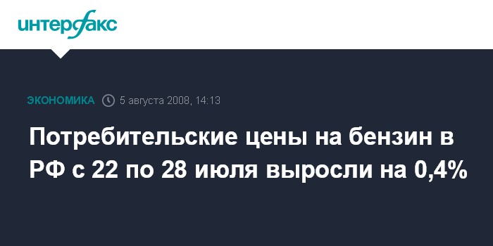В июле рост потребительских цен на автотопливо составил 3,8%. С начала 2008 года средние цены на бензин в РФ поднялись на 20,5%, стоимость дизельного топлива относительно уровня конца декабря 2007 г. выросла на 30,2%.