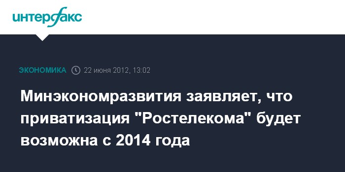 Минэкономразвития заявляет, что приватизация "Ростелекома" будет возможна с 2014 года