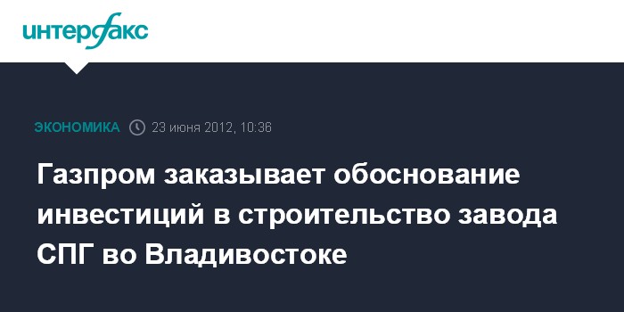 Санкт-Петербург. 23 июня. INTERFAX.RU - "Газпром" (РТС: GAZP) объявил запрос предложений на разработку "Обоснования инвестиций в проект строительства завода СПГ в районе г. Владивосток", сообщила компания.