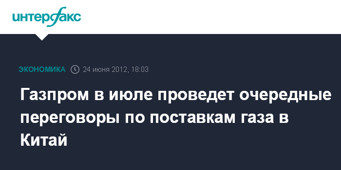 Санкт-Петербург. 24 июня. INTERFAX.RU - Газпром планирует в июле 2012 года провести очередной этап переговоров по поставкам российского газа в Китай, сообщил журналистам зампред правления компании Александр Медведев. "Очередной раунд консультаций и переговоров состоится в июле в Китае", - сказал он. А.Медведев подчеркнул, что консультации будут вестись на уровне компаний.