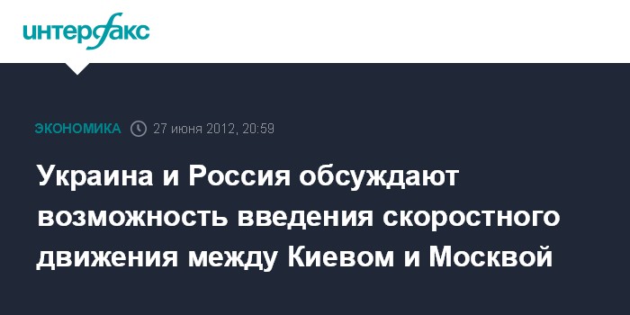 Киев. 27 июня. INTERFAX.RU - Руководители транспортных ведомства Украины и России обсуждают возможность введения скоростного движения между Киевом и Москвой, сообщил вице-премьер - министр инфраструктуры Украины Борис Колесников.