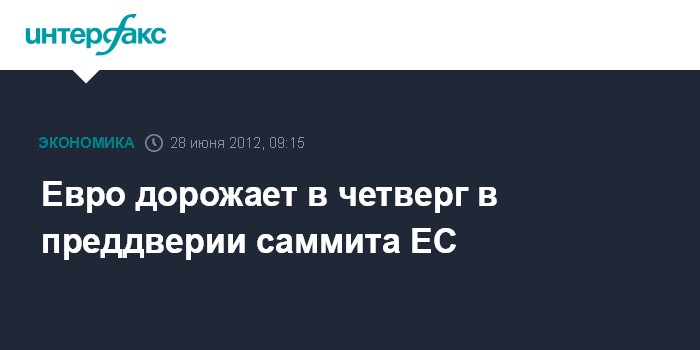 Токио. 28 июня. INTERFAX.RU - Европейская валюта дорожает в четверг относительно доллара США и иены в ожидании очередного саммита ЕС, сообщает агентство Bloomberg.