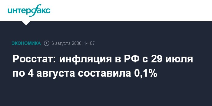 Росстат: инфляция в РФ с 29 июля по 4 августа составила 0,1%