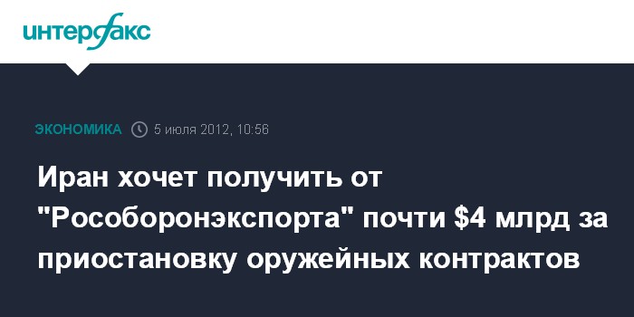 Иран хочет получить от "Рособоронэкспорта" почти $4 млрд за приостановку оружейных контрактов