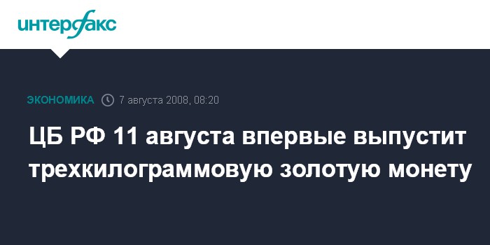 ЦБ РФ 11 августа впервые выпустит трехкилограммовую золотую монету