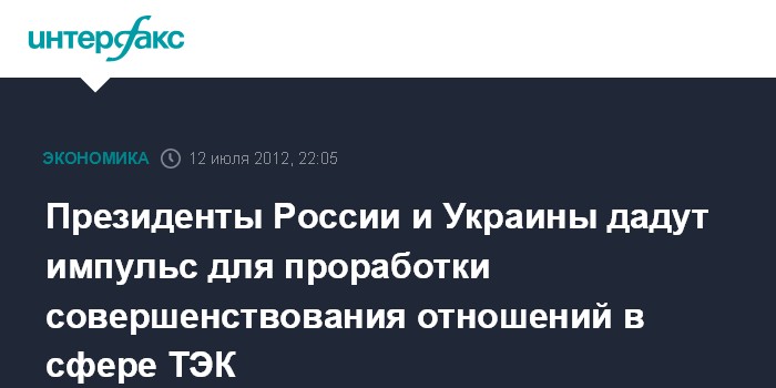 Президенты России и Украины дадут импульс для проработки совершенствования отношений в сфере ТЭК