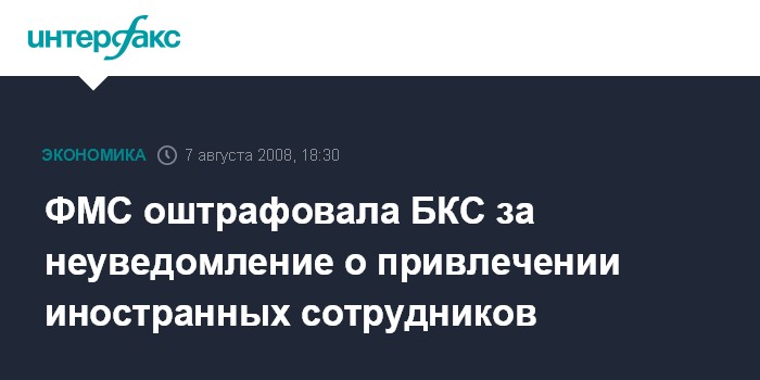 ФМС оштрафовала БКС за неуведомление о привлечении иностранных сотрудников
