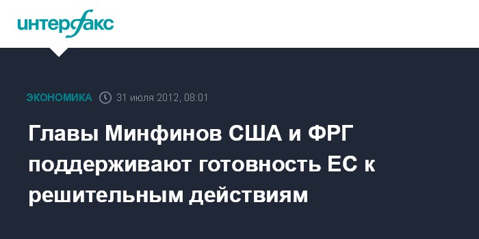 Главы Минфинов США и ФРГ поддерживают готовность ЕС к решительным действиям